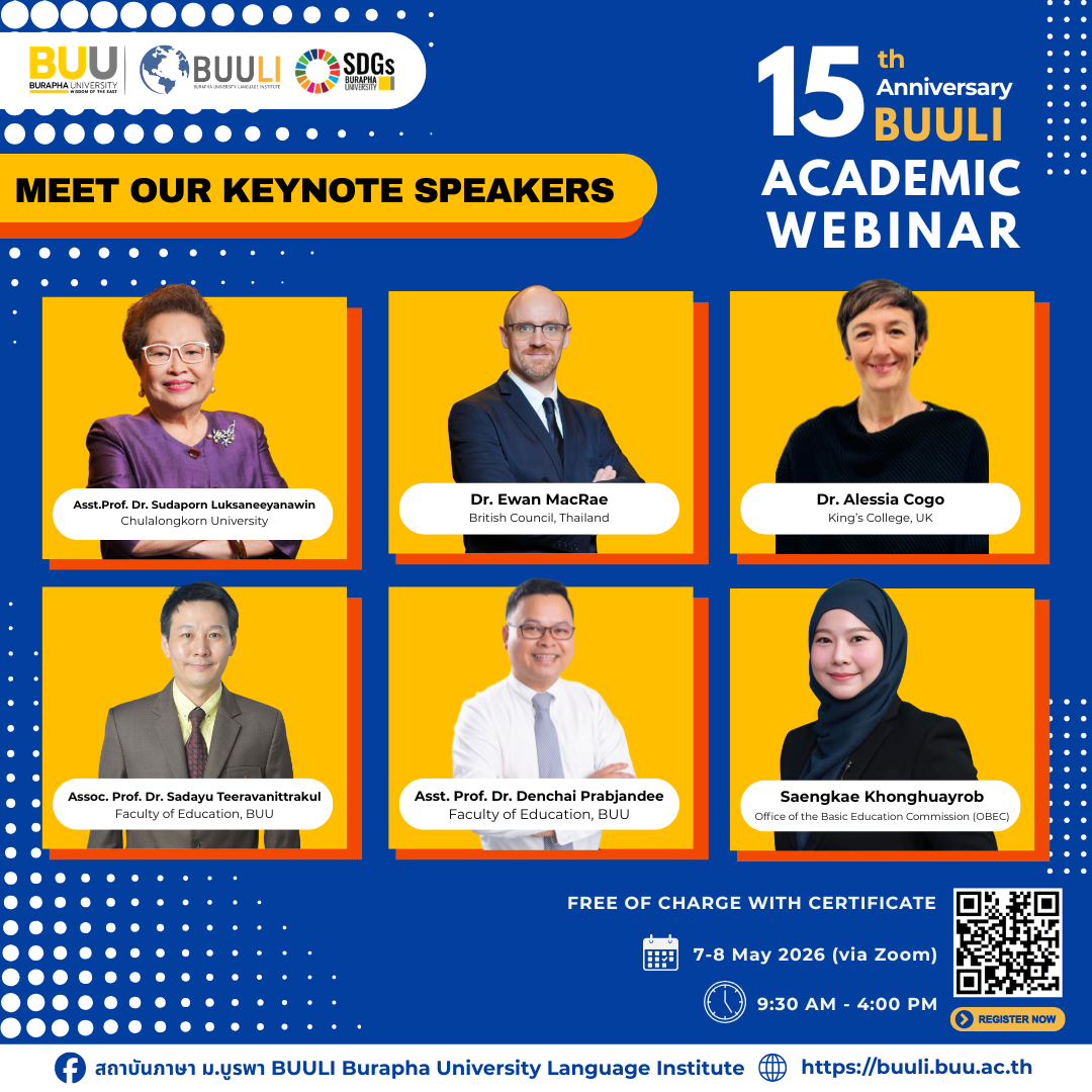 สถาบันภาษา มหาวิทยาลัยบูรพา (BUULI) ขอเชิญครูผู้สอนภาษาอังกฤษ อาจารย์ นักวิชาการ นิสิต นักศึกษา และผู้ที่สนใจด้านภาษาและการศึกษา